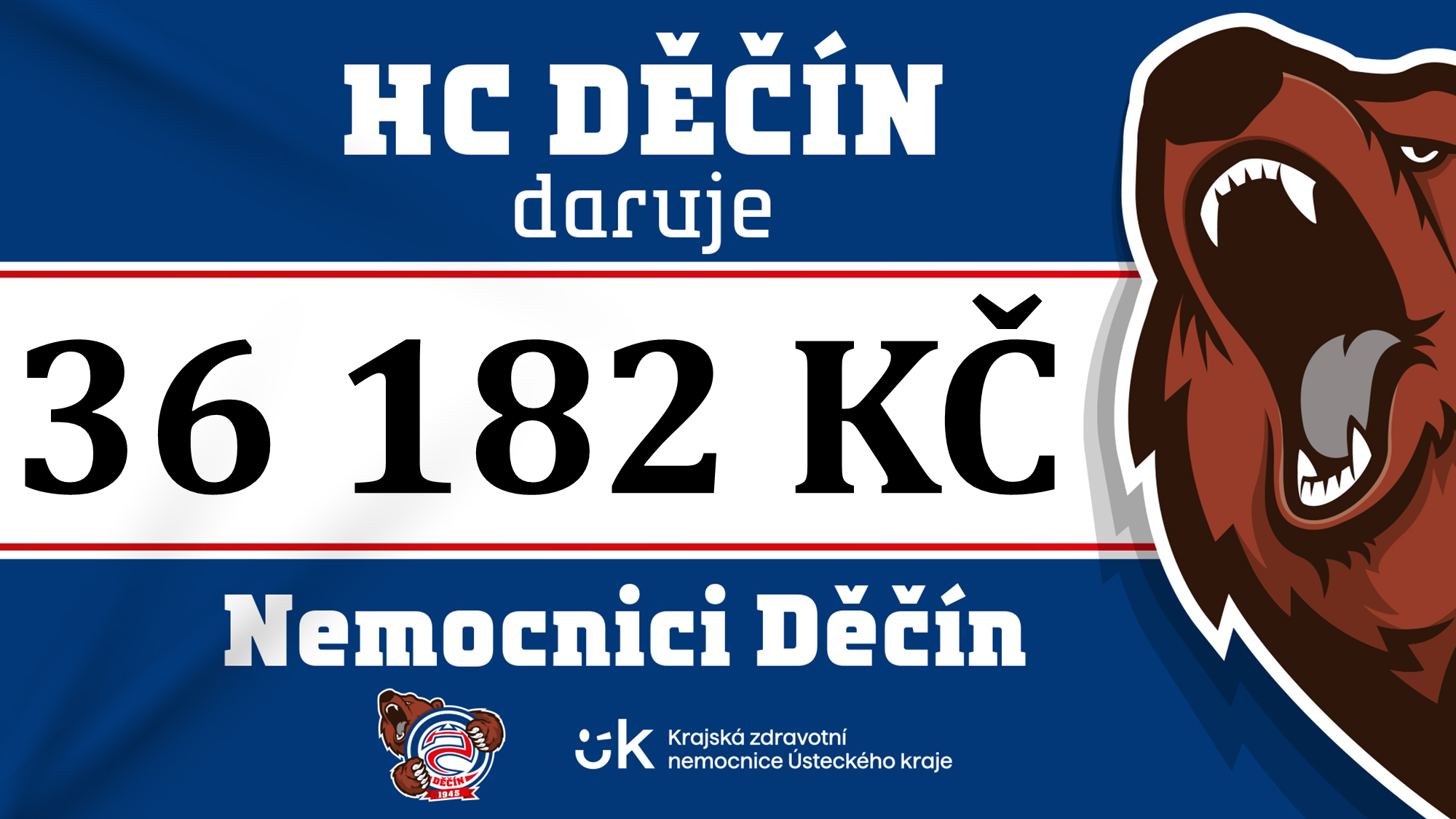 Darovací šek předali členové A-týmu Tomáš Faigl a Vladimír Brož společně se zástupkyní fanklubu, paní Procházkovou. Šek převzali zástupci Nemocnice Děčín — primář chirurgického oddělení MUDr. Jan Rejholec, pod jehož oddělení místní urologická ambulance spadá, a primář urologie a robotické chirurgie MUDr. Martin Hlavička z Nemocnice Ústí nad Labem, která zajišťuje personální obsazení děčínské urologické ambulance.